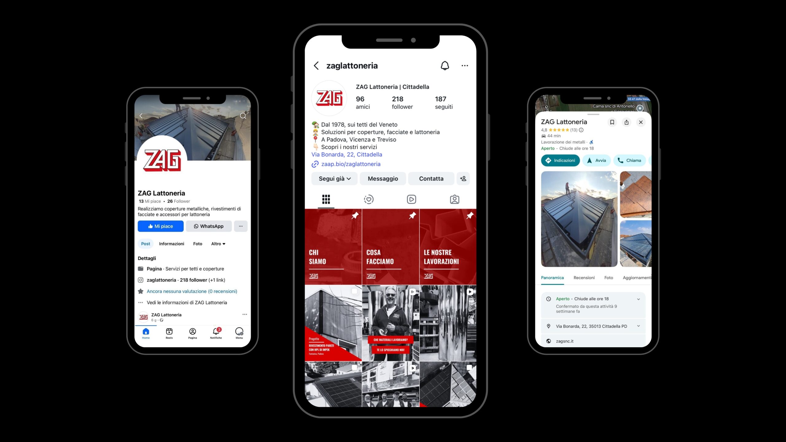 Per ZAG snc, azienda specializzata nella lavorazione di lamiere, abbiamo sviluppato una brand identity per dare coerenza e forza alla comunicazione digitale: dal sito internet alla presenza sui social media.
